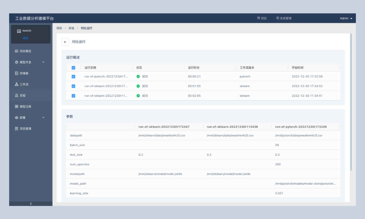 管理所有实验及运行记录的运行结果。