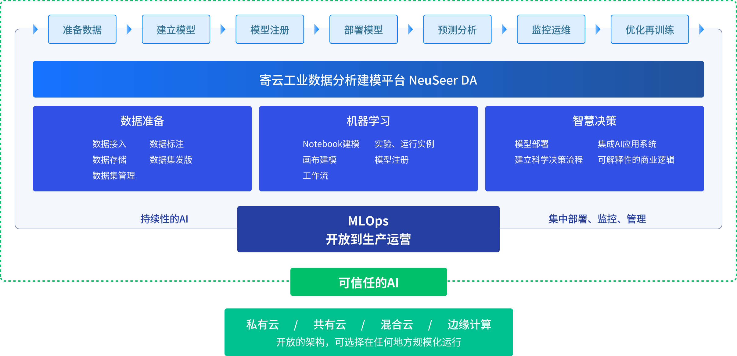 NeuSeer DA助力数据科学家和开发人员更快、更自信地构建、部署和管理高质量的模型,利用行业领先的机器学习运营(MLOps)以及多种工具集成加快AI价值实现速度,帮助用户落地更多的工业AI应用。