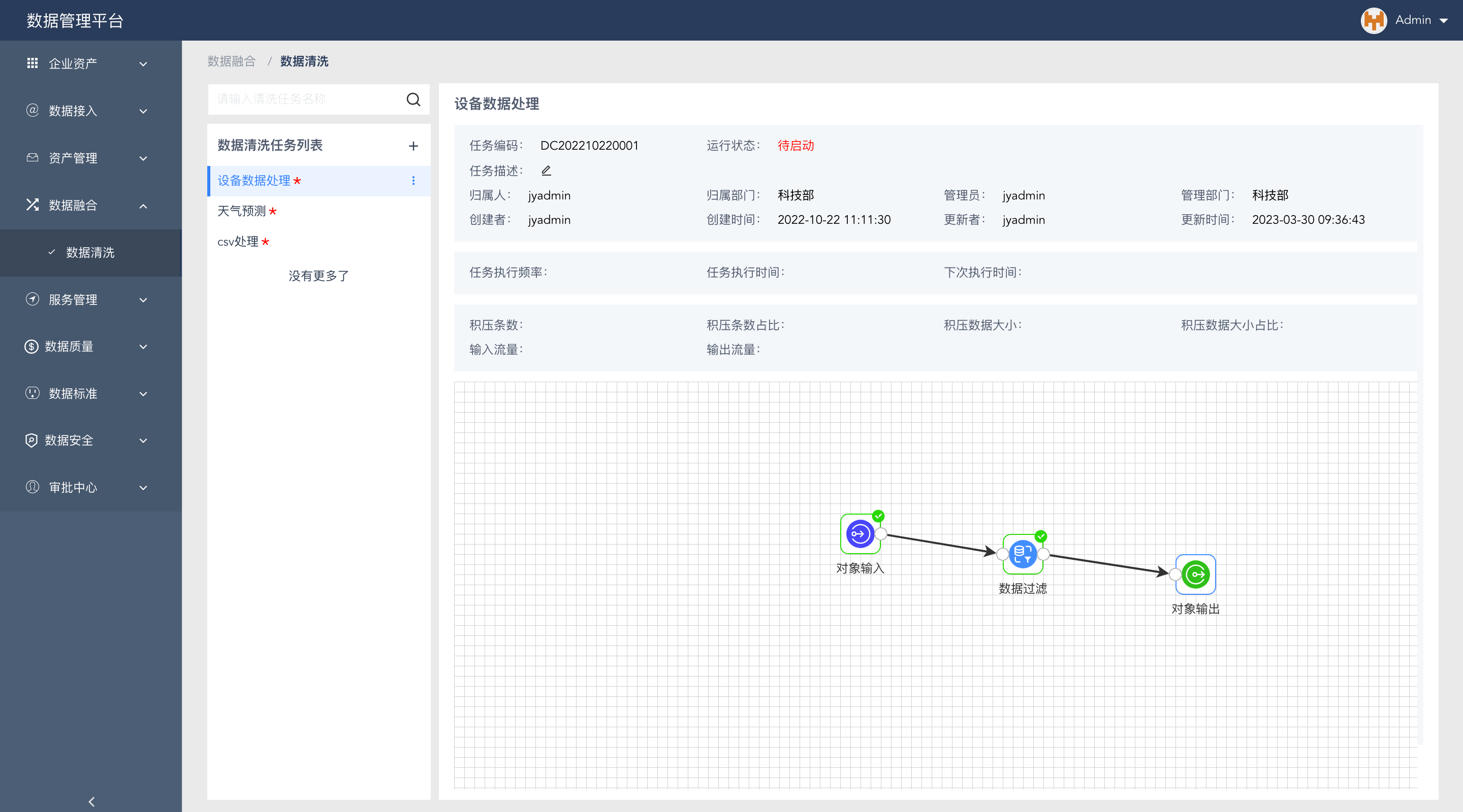 支持拖拽式构建、编排任务流程,支持离线批处理、实时流计算,从数据库、本地文件抽取数据进行数据清洗、过滤、转换、加工、同步等数据融合操作,满足业务在数据分析、业务创新、决策支持方面的用数要求。