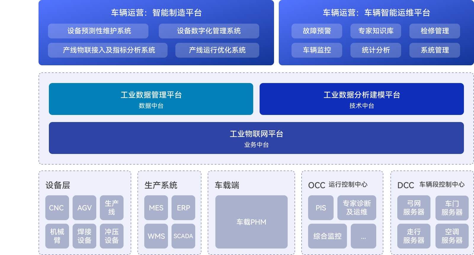 面向轨道交通行业客户从制造到运营的不同阶段的需求,寄云基于云Neuseer工业智能平台,为客户提供包含生产制造及车辆智能运维两个环节的解决方案。